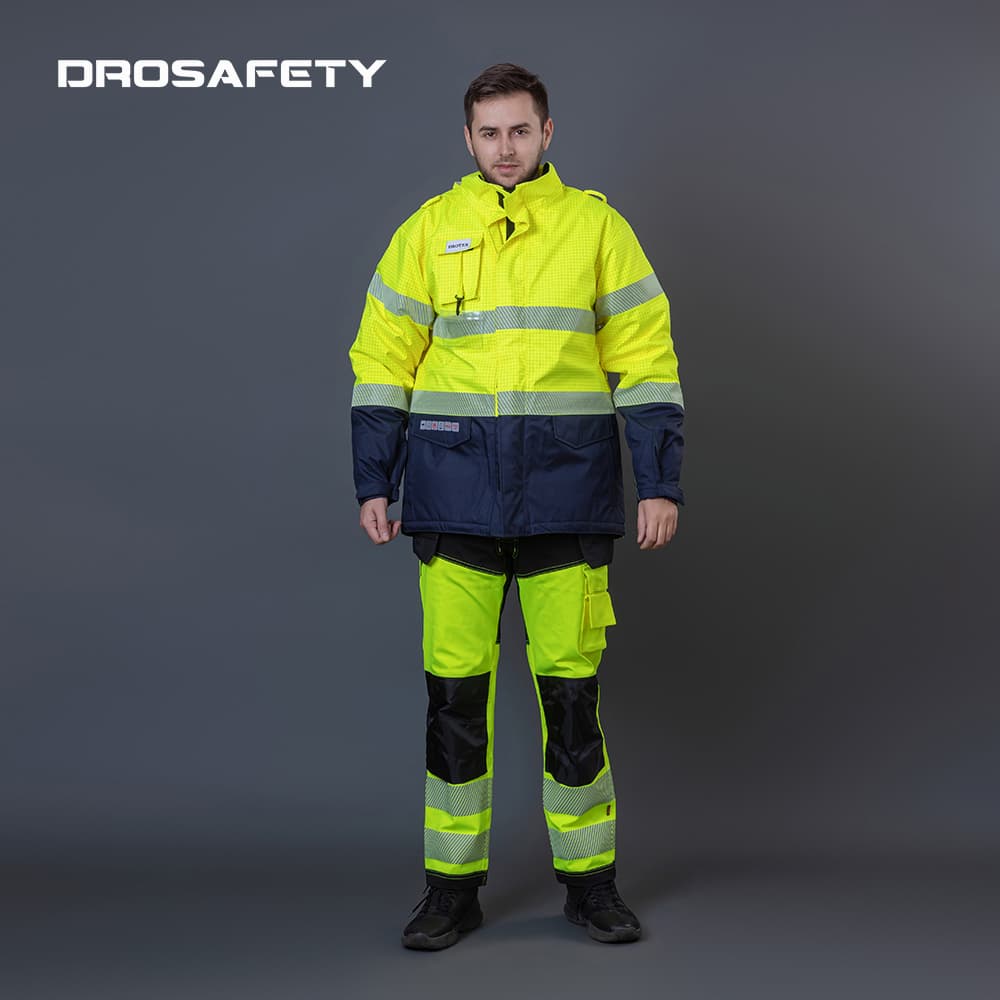 Tanto retardante de llama de alta visibilidad como impermeable para operaciones al aire libre un impermeable versátil